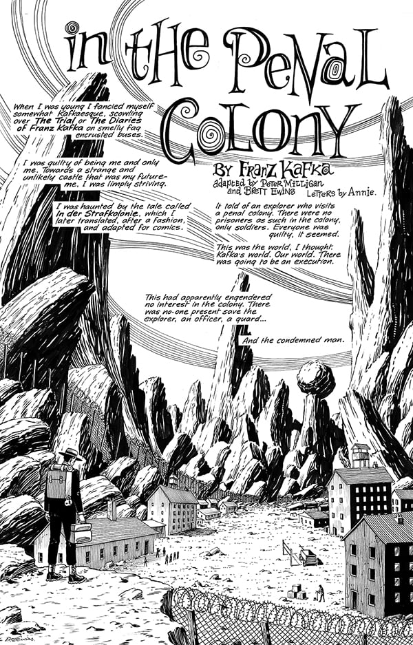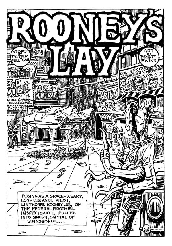 Dark & Golden Books are pleased to be able to present 2 x Brett Ewins and Peter Milligan, a new collection of a pair of stories by Peter Milligan and Brett Ewins, unfairly out of print since their original publication. In 1980's Rooney's Lay, one of their first collaborations, the space age and sleaze collide in newly wild ways, while in 1991's adaptation of Kafka's In The Penal Colony, the duo elevate and interrogate the original text, teasing meanings from the fabric of the story. The comic also features new introductions to each story and a brief interview with Milligan, as well as a timeline of the creators' work together.