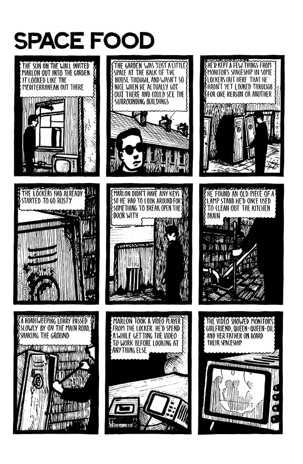 Dark & Golden Books are pleased to be able to present 2 x Chris Reynolds, a new collection of two stories that have been unfairly out of print since their original publication. In Space Food. from 1990, sci-fi and the kitchen sink collide in a typically uneasy fashion, while in 2005's The Animals' War time travel proves to be less of a blessing than first thought, and the landscapes are littered with dark warnings. The comic also features new introductions to each story and a vintage interview with Reynolds from 1989, as well as a timeline of the creators' collections.